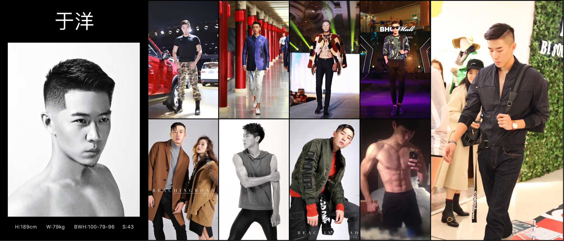 個人簡介:服裝表演本科畢業,首屆長白山形象大使十佳模特,龍騰精英men‘s uno十佳,活動經歷有,北京時裝周,成都萬象城時裝周,計文波(JWB)發布會,曾鳳飛故宮主題服裝秀,與捷豹、路虎合作車展,和長城汽車H9新品發布,2017年成都國際車展北汽集團車模,遂寧國際汽車展,東風日產新品發布,等各類小型車展,服裝淘寶拍攝經驗豐富,期待與您的合作!